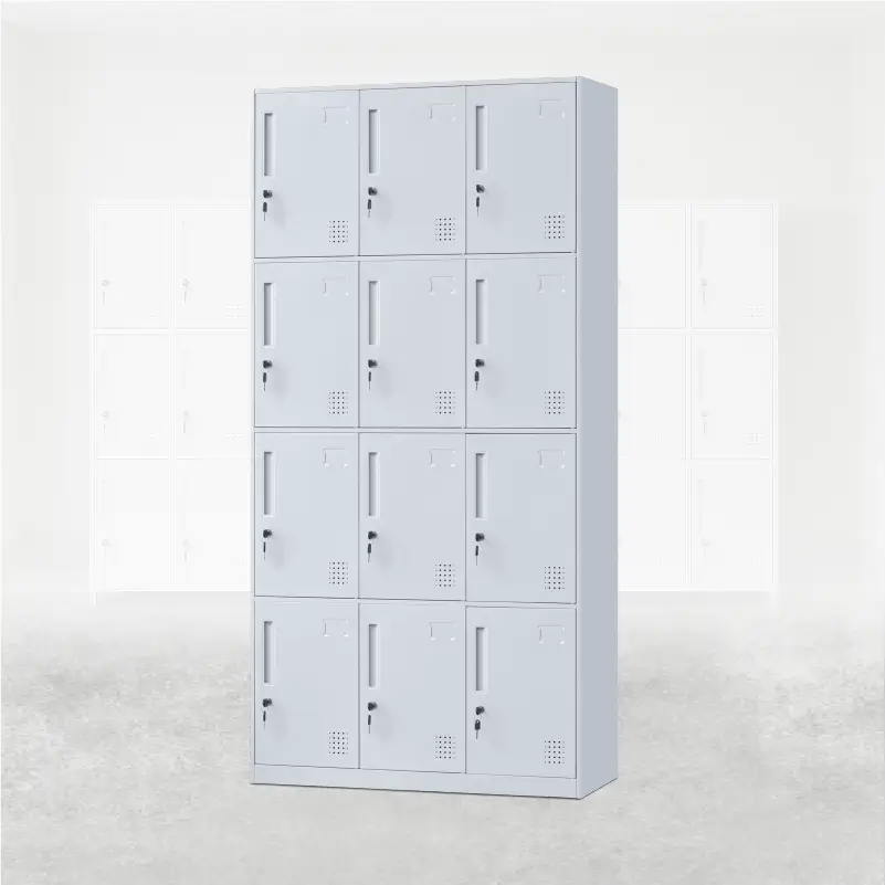 Locker metálico de 12 puertas de 3×4 listos para entregar y montar sin complicaciones.