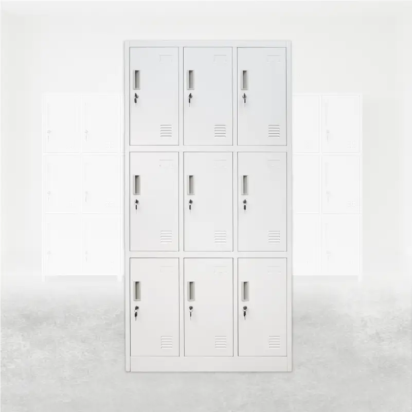 El Locker Metálico de 9 Puertas (3×3) ofrece un diseño modular y compacto ideal para espacios compartidos como vestuarios, oficinas, colegios o plantas industriales. Fabricado en acero laminado SAE1010 de alta resistencia, incluye cerraduras con llave en cada puerta, ventilación por ranuras y pintura anticorrosiva termo esmaltada.